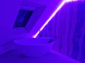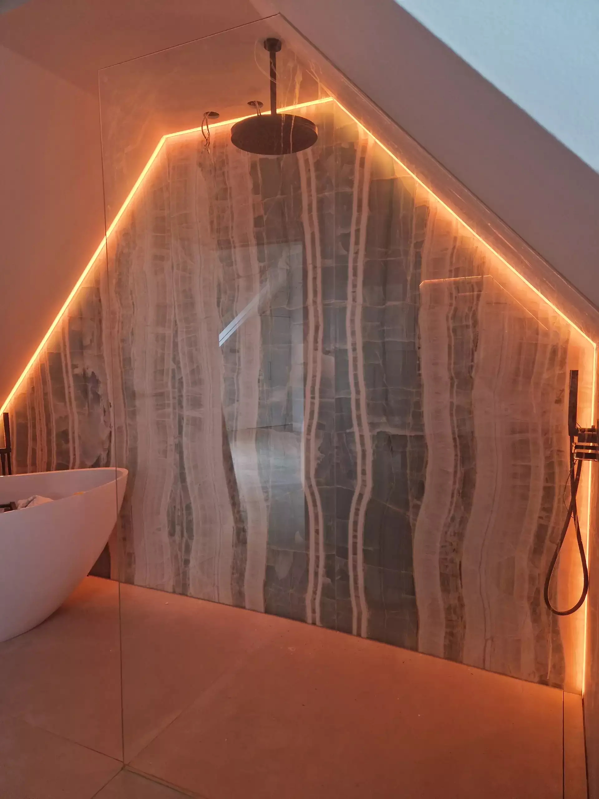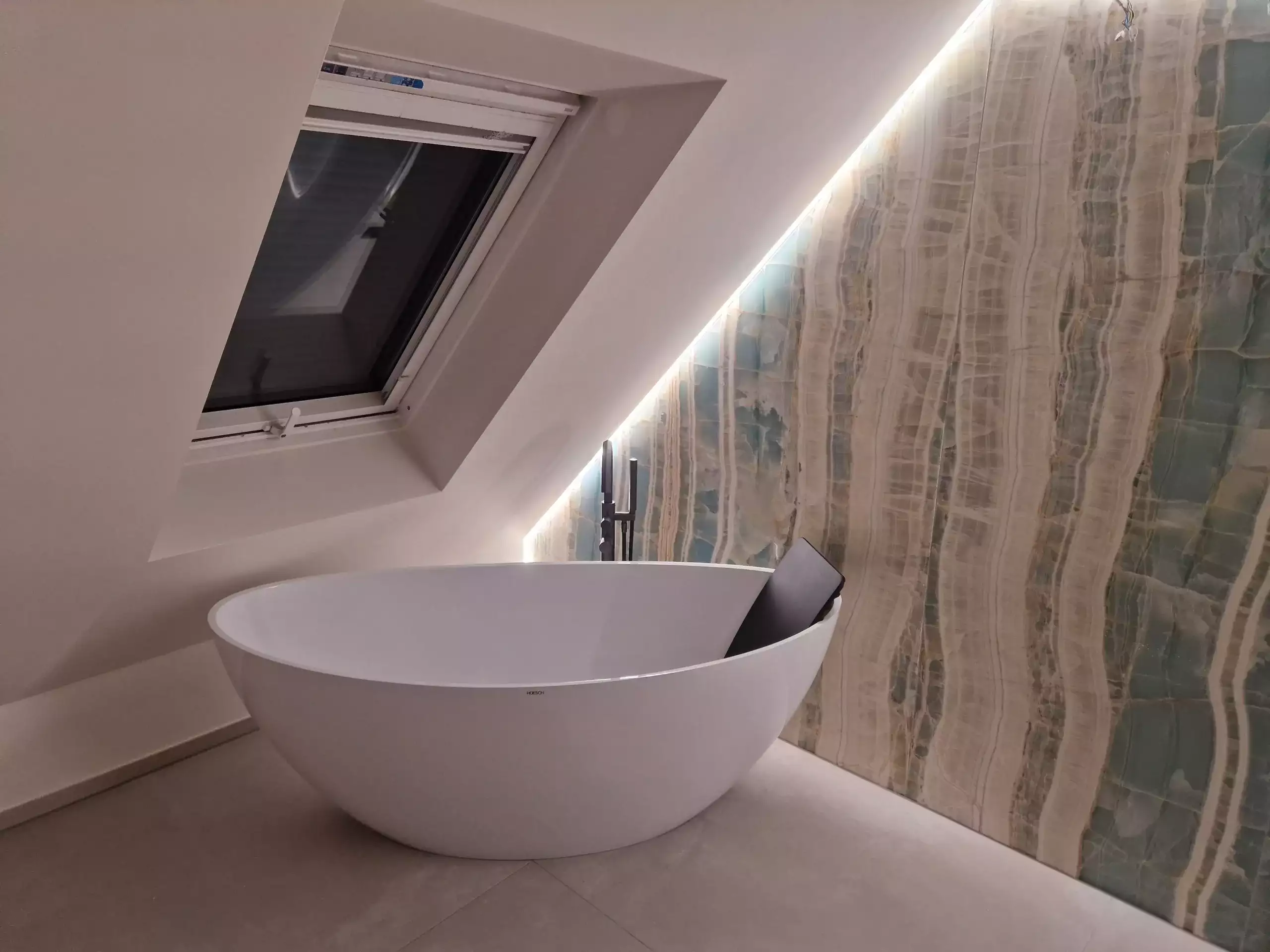 Komplettsanierung eines Düsseldorfer Dachgeschosses inklusive Luxus-Badmodernisierung und Großformatfliesen